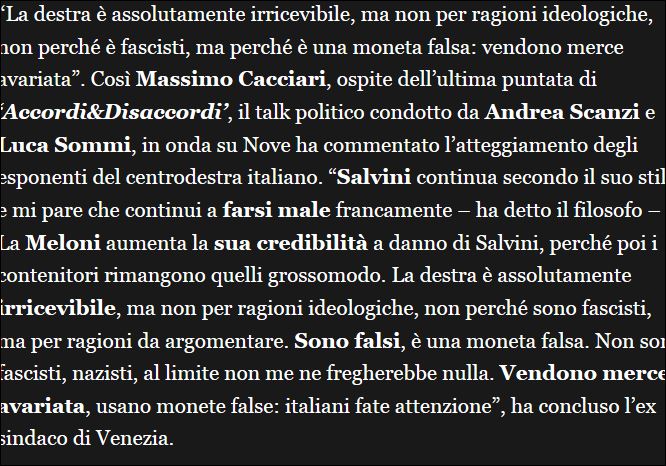 Per una volta sono d’accordo in toto con l’ex sindaco di Venezia: i due vendono davvero merce avariata, anzi putrefatta. Noi ora siamo EUROPEI, che piaccia o meno, altrimenti si va con pappalardo e i suoi gilet gialli… da circo Orfei sempre che esista ancora 😀