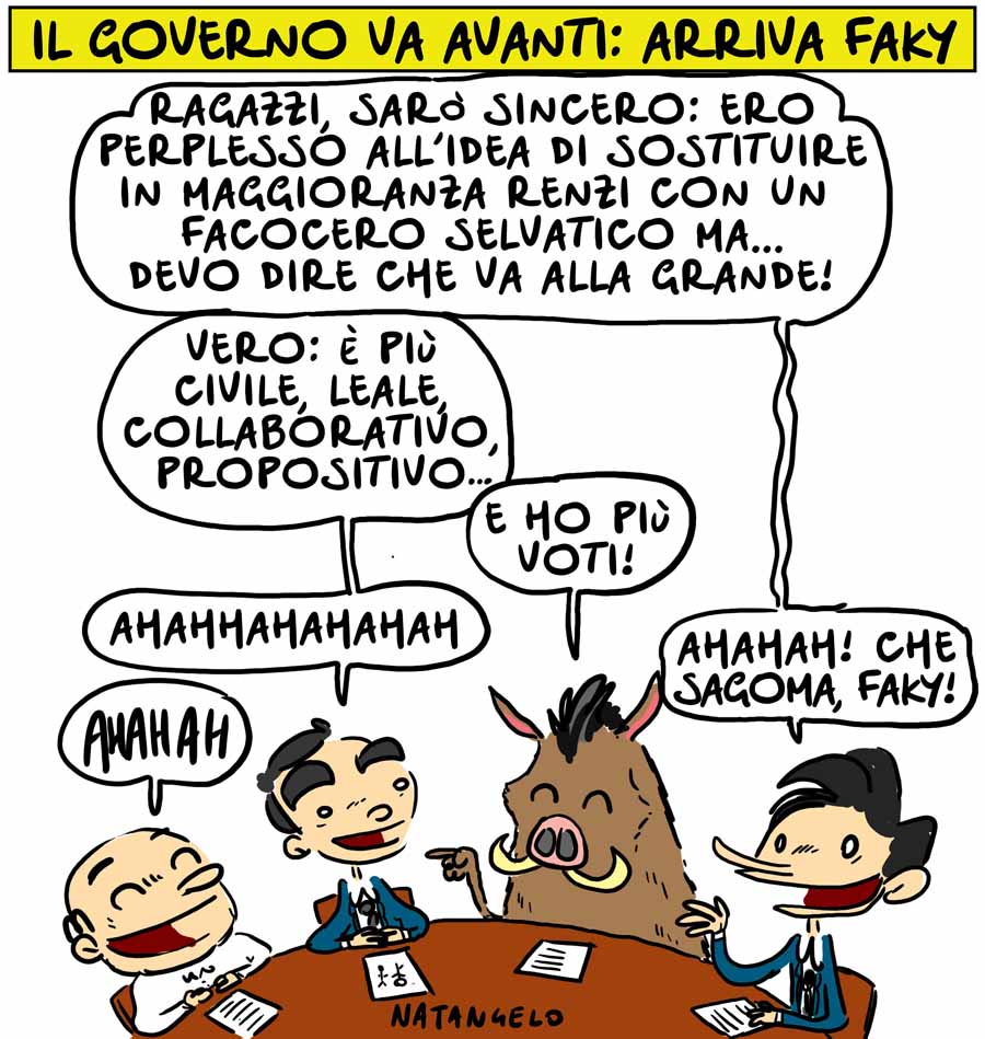 Elezioni o Faky il facocero? Il dubbio perplime: le elezioni mi tentano, sarei proprio curiosa di vedere chi scelgono -DAVVERO- gli italiani, datosi che i sondaggi sono tutti PILOTATI, cominciando da quelli della berlusconiana Ghislieri che se la tira tanto avventurandosi in previsioni “aritmetiche” che manco Pitagora naturalmente sempre a favore della destra 😀 d’altro canto di FACOCERI ne abbiamo già tanti che magari Faky è quello che può fare la differenza 😀