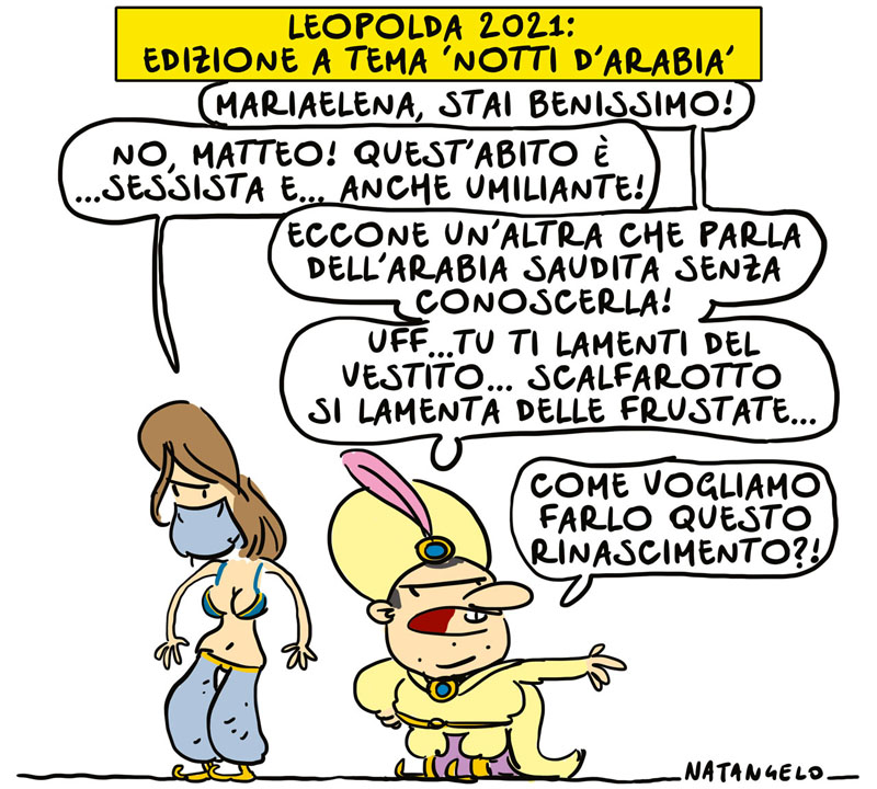 Scritto il 17 novembre 2021 LEOPOLDA2021: notti d’arabia Natangelo sei unico, certo il ns 2% si presta a essere preso per lo deretano, ogni giorno si impegna a” migliorarsi in questa impresa” 😀 😀 😀 Condividi: Fai clic per condividere su X (Si apre in una nuova finestra) X Fai clic per condividere su Facebook (Si apre in una nuova finestra) Facebook Mi piace Caricamento... Correlati