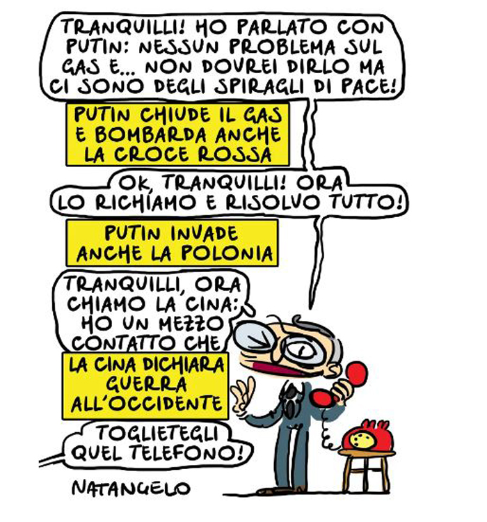 Poi ci sarebbe anche la faccenda del Garante Italia per l’Ucraina-il telefono non glielo avevano ancora tolto- che ci porterà diritti in guerra con quella “caccola”- a sentir il gregge italico- della Russia ma niente paura ci stanno sempre gli amerikani a proteggerci, quelli stessi che hanno attaccato il sonaglio al collo dell’orso …