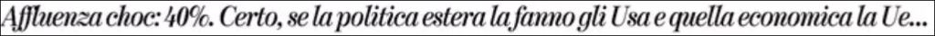 Io però mi preoccupo molto per quel 60% di italiani che non hanno votato nelle nostre 2 più importanti città: rappresentano lo scontento del paese che ha superato i livelli di guardia, pronto ad essere cavalcato non da un PD in coma irreversibile né tantomeno da un M5S scialbo che ha abbandonato la lotta da tempo, bensì da una qualche forza ancora informe a cui non posso neppure pensare….fate voi.