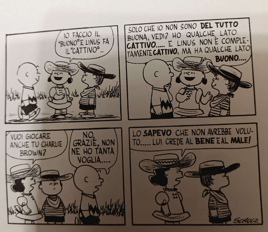 Povero Charlie Brown crede ancora al Bene e al Male, mentre Lucy ha capito tutto…
