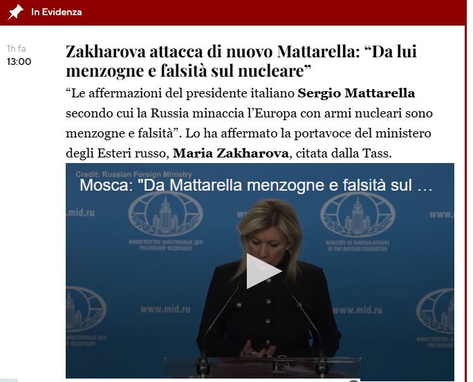 Ecco le due recentissime risposte di Maria Zachàrova, molto più educate di quelle che gli avrei elargito io, a Mattarella, che non ho mai riconosciuto come mio presidente: ultimamente ha mentito ignobilmente “sulle minacce nucleari” della federazione russa attaccandola di nuovo. Ed è solo l’ultimo dei suoi deliri . Ma un po’ di vergogna mai, colle e chigi????