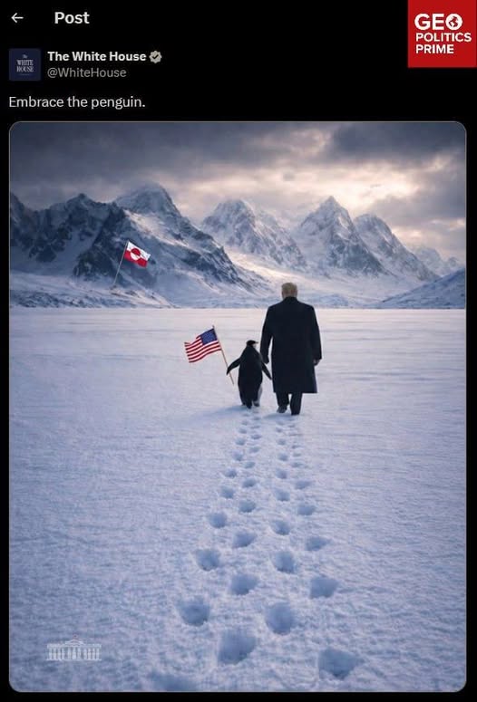 Scritto il 25 gennaio 2026 L’ignoranza della white house I pinguini in Groenlandia? STUDIATE bifolchi Condividi: Condividi su X (Si apre in una nuova finestra) X Condividi su Facebook (Si apre in una nuova finestra) Facebook Mi piace Caricamento... Correlati